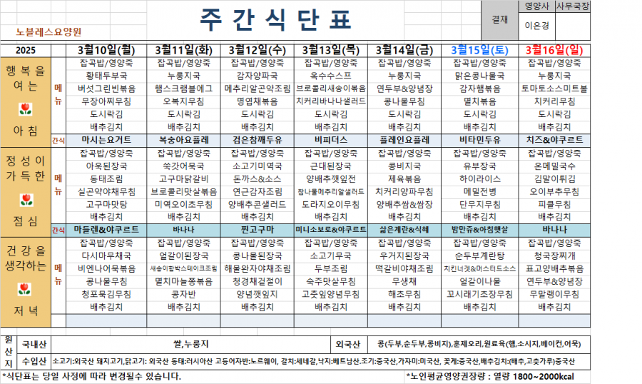 2025년 3월 2주차 식단표 페이지 정보 작성자 관리자 댓글 0건 조회 141회 작성일 25-04-04 14:24 목록 본문 2025년 3월 2주차 식단표입니다~^^ 이전글2025년 3월 3주차 식단표 25.04.04 다음글2025년 3월 1주차 식단표 25.04.04 댓글 0 댓글목록 등록된 댓글이 없습니다.
