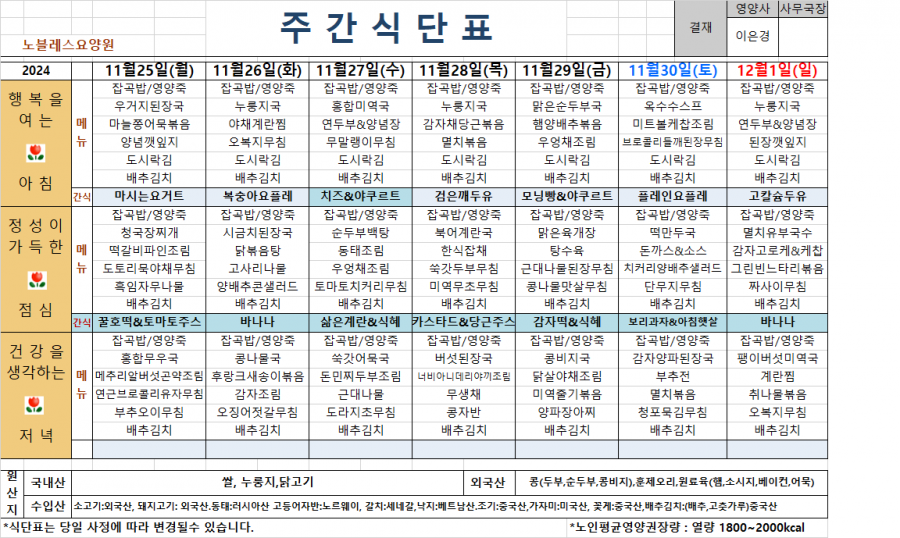 2024년 11월 4주차 식단표 페이지 정보 작성자 관리자 댓글 0건 조회 133회 작성일 25-04-04 14:19 목록 본문 2024년 11월 4주차 식단표입니다~^^ 이전글2024년 12월 1주차 식단표 25.04.04 다음글2024년 11월 3주차 식단표 25.01.26 댓글 0 댓글목록 등록된 댓글이 없습니다.
