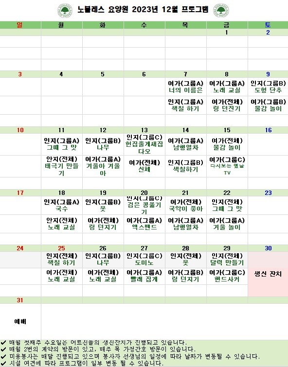 2023년 12월 프로그램 일정표 페이지 정보 작성자 관리자 댓글 0건 조회 65회 작성일 25-02-08 15:08 목록 본문 2023년 12월 프로그램 일정표입니다~^^ 이전글2024년 1월 프로그램 일정표 25.02.08 댓글 0 댓글목록 등록된 댓글이 없습니다.